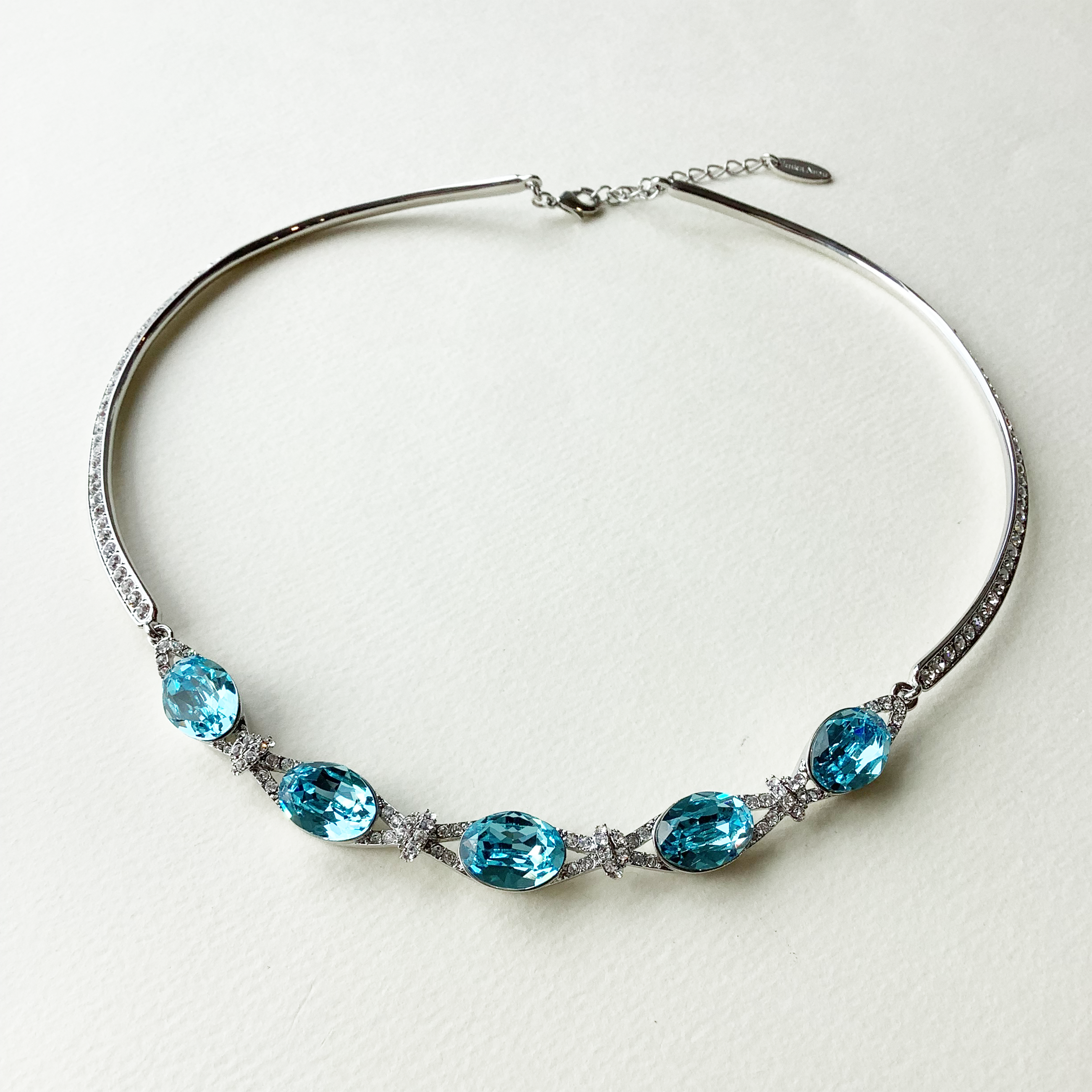 ブルーの楕円形クリスタルガラスを使用したチョーカーです