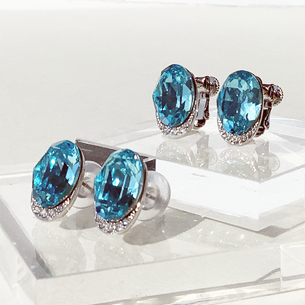 741072 JinkaNezu クリスタルガラス ブルーエリプスイヤリング/ピアス