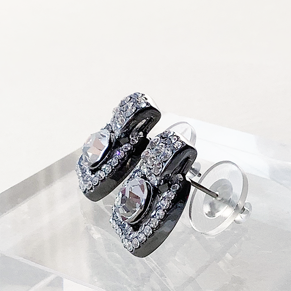 クリスタルガラスの光をより強調するように仕上げたイヤリングまたはピアス。土台の地金をブラックカラーにすることで、クリスタルガラスの輝きを引き立て、耳元に華やかな光をもたらします