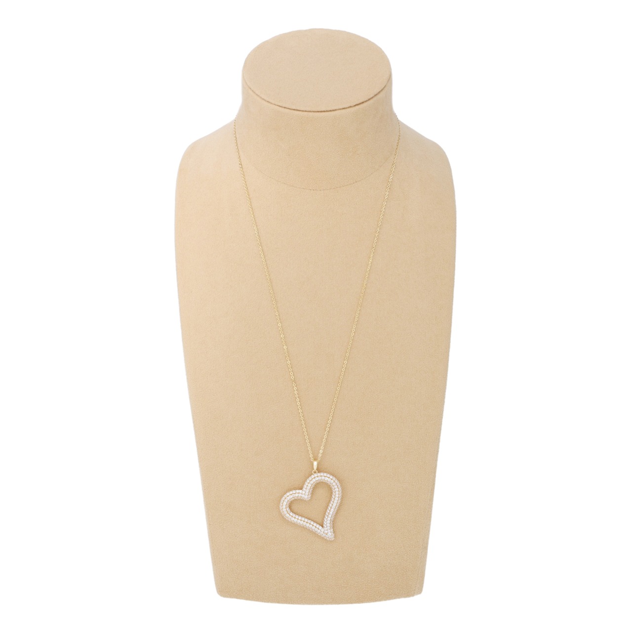 オープンハートデザインに165石以上のキュービックジルコニアが輝くペンダント。シンプルながら、存在感たっぷりのデザインが、胸元を美しく引き立てます