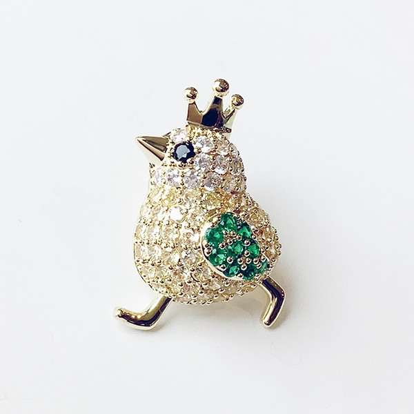 頭に王冠を乗せたひよこのタックピン。王子様のように歩くひよこが可愛らしいデザインです