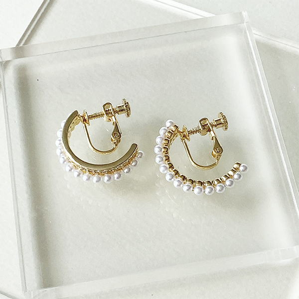742303 JinkaNezu キュービックジルコニア ビジューパール イヤリング/ピアス