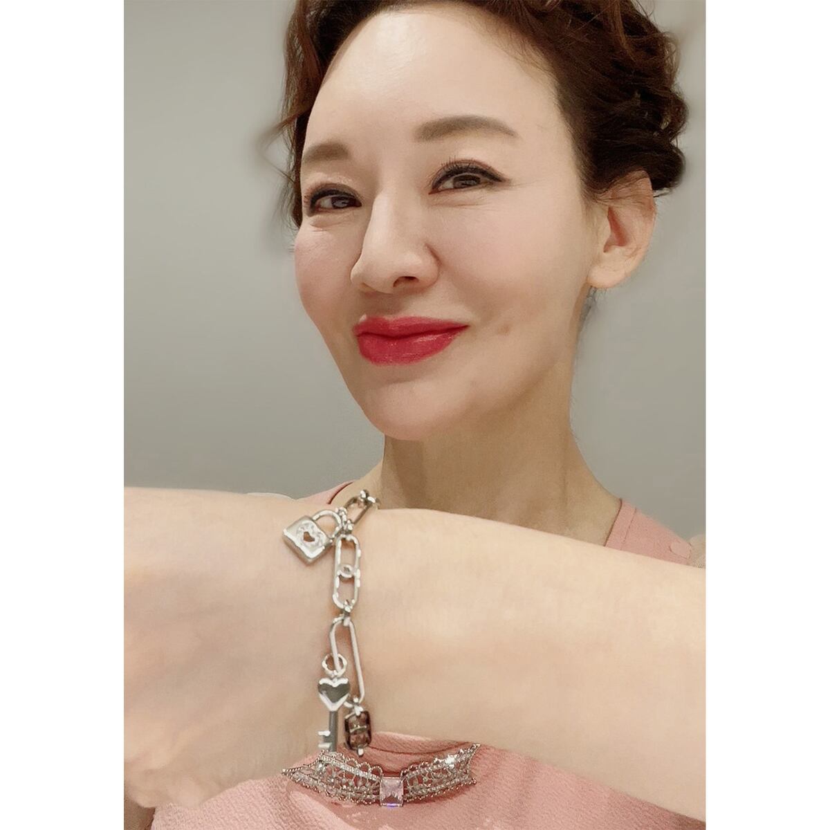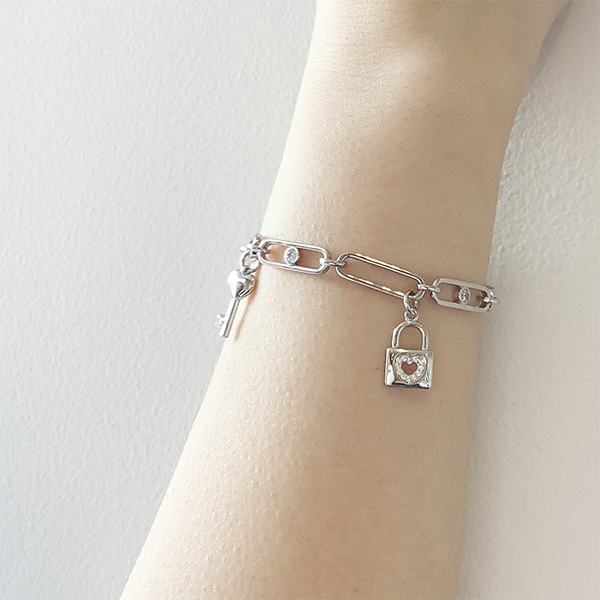 キーチャームが揺れるチェーンブレスレット。可愛らしさとエレガンスを兼ね備えたデザインです