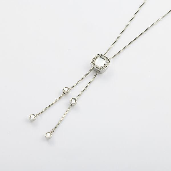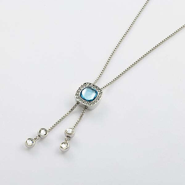 〇中央のクリスタルガラスがスライドして長さ調整が出来るスライダーネックレスです。クリスタルガラスの裏側はマグネットになっていてマグネットの商品(別売)を着けることが出来ます。