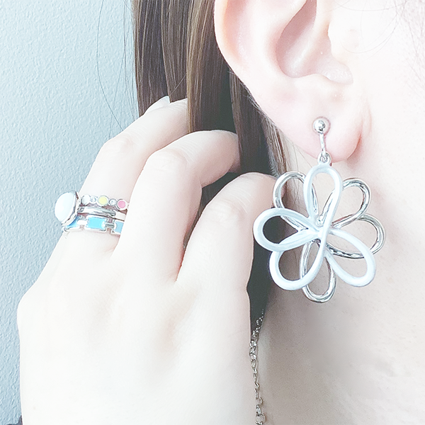 耳元をやさしく印象付ける、存在感のあるモチーフ。幅広いスタイルに合わせやすく、普段使いはもちろん特別な日のおしゃれにもおすすめです