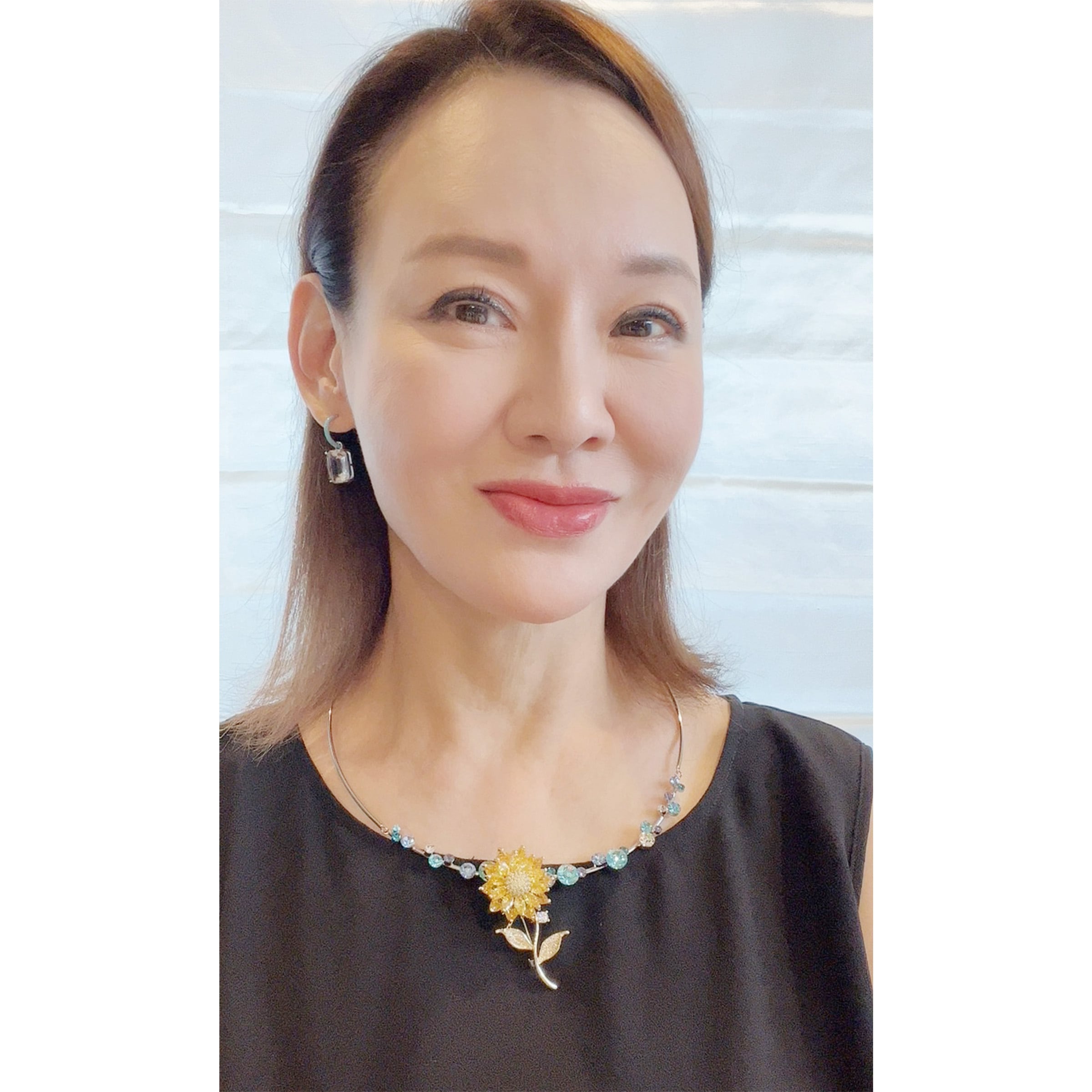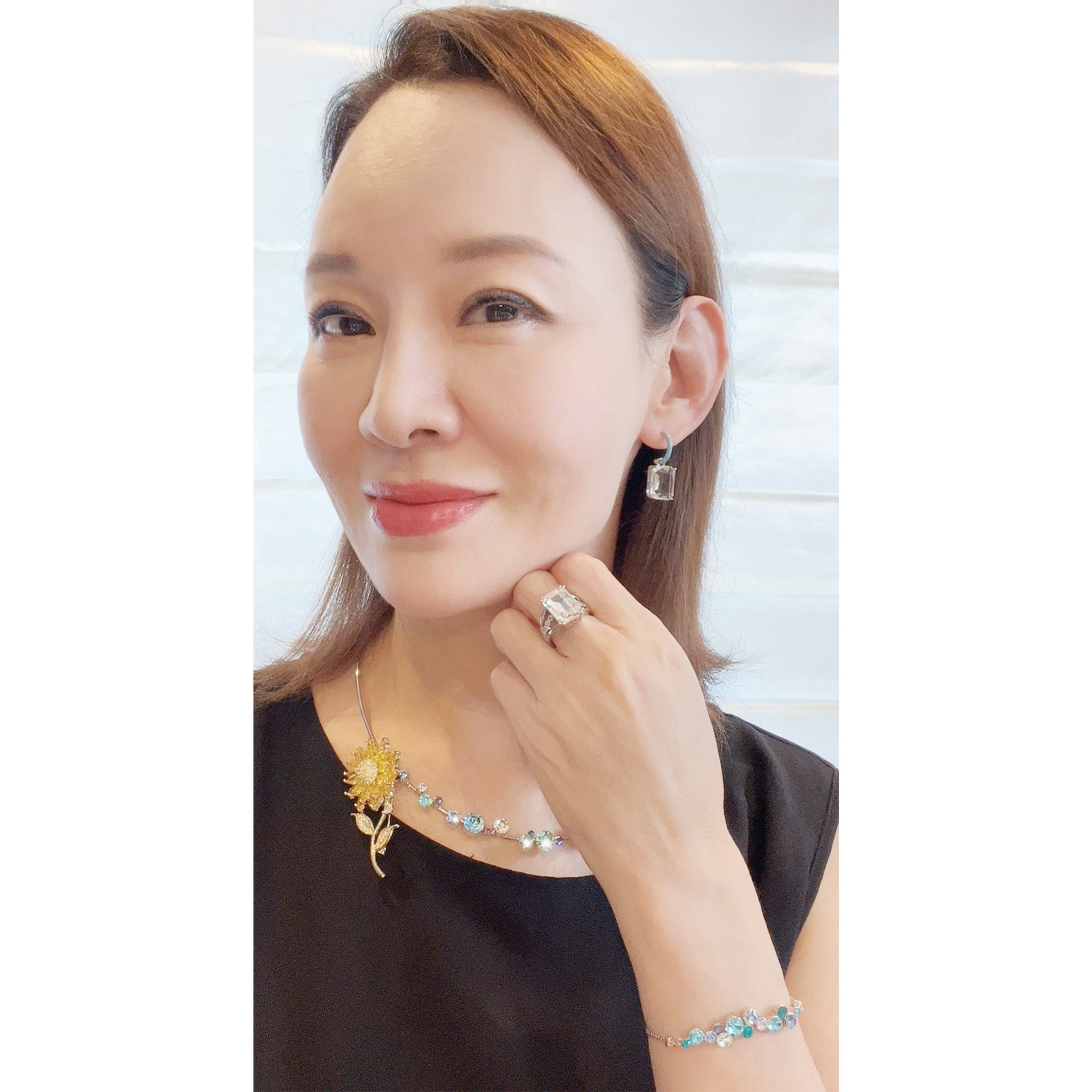 水色のエポキシカラーがアクセントとなり、お顔まわりを爽やかに彩り、耳元に軽やかな印象を与えてくれます
