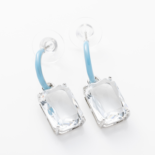 オクタゴンカットのクリアガラスが揺れるたびに光を受けて美しく煌めく、シンプルながらも個性が光るデザインです