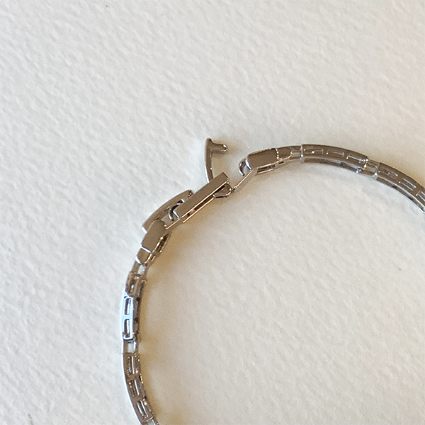 キュービックジルコニアがプレートにびっしり敷き詰められ、お手元で美しく光煌めくブレスレットです。シンプルなデザインが洗練された印象を与え、幅広いスタイルに溶け込みます