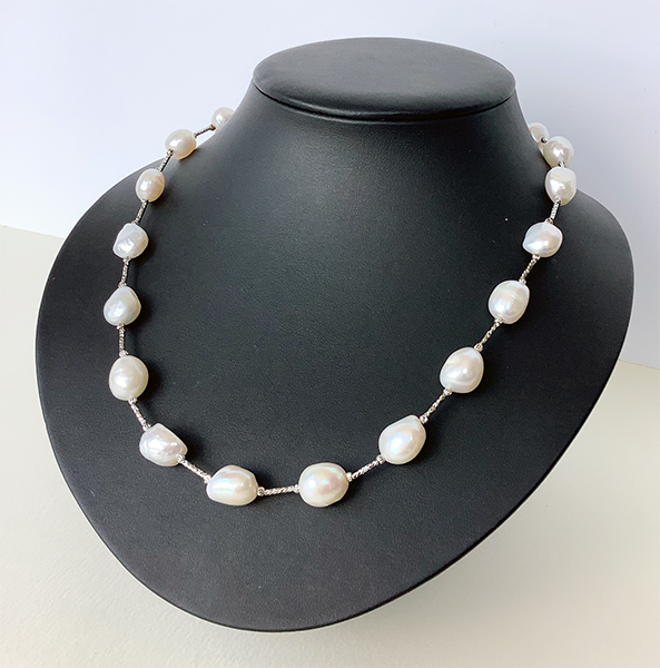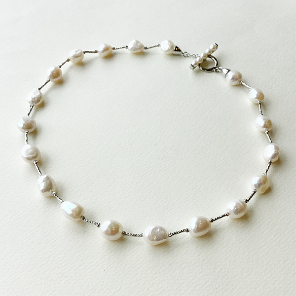〇大粒の淡水バロックパールを使用したステーションネックレス
