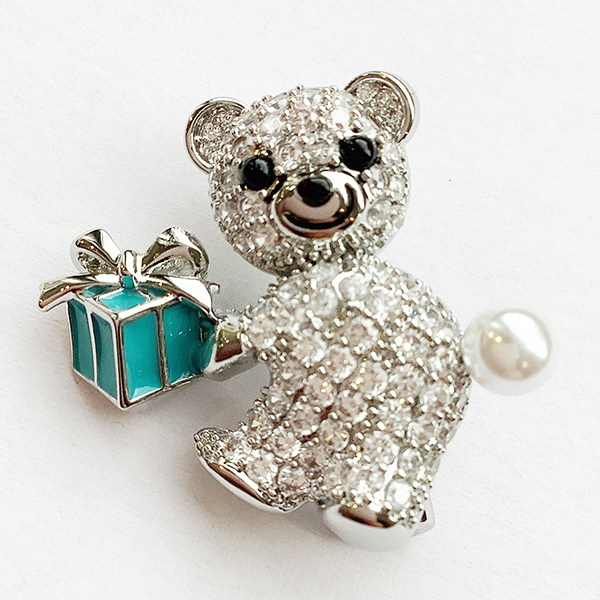 747823 JinkaNezu キュービックジルコニア くまさんからの贈り物 ブローチ