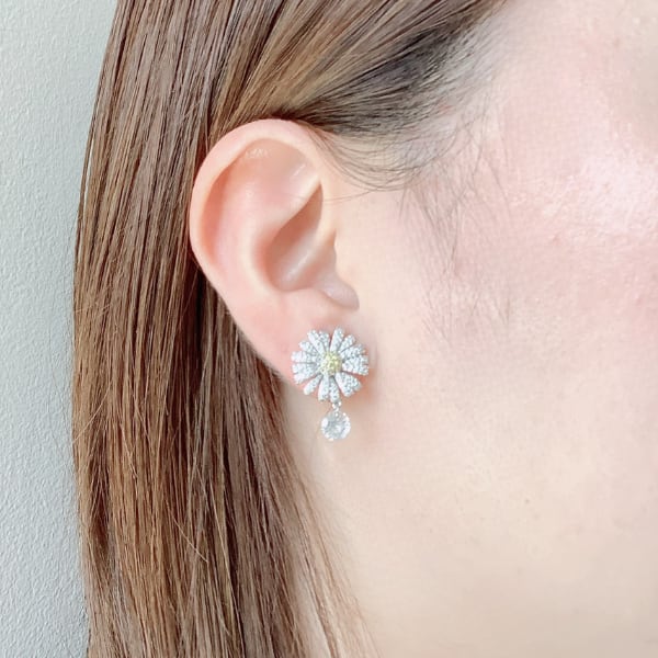 1ペアに合計300石以上のキュービックジルコニアを使用し、繊細な輝きが装いに華やかさをプラス。耳元で、小さな輝きが咲きます