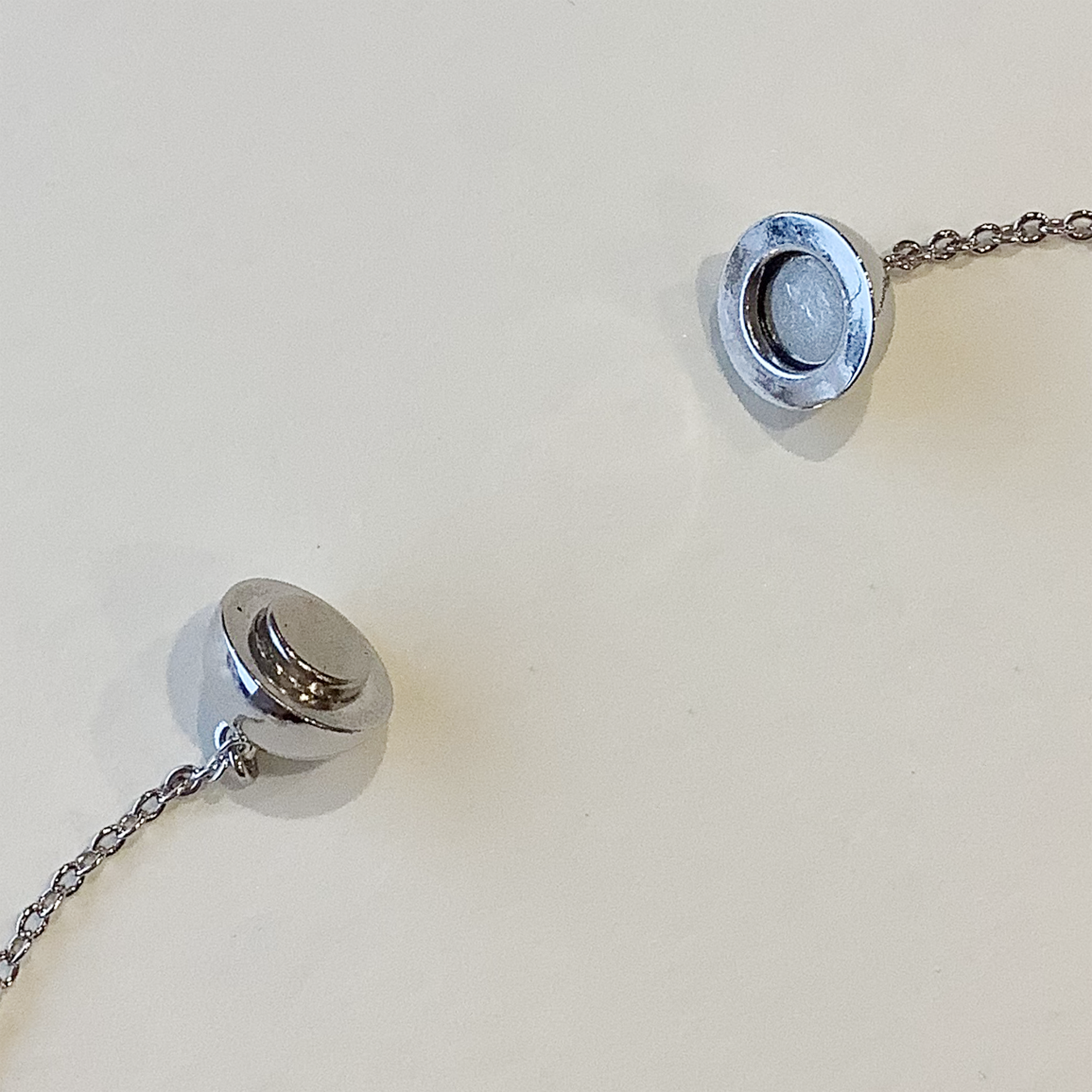 キュービックジルコニアは表裏があまり目立たないように、枠のデザインにこだわりました。また、留め具はマグネットを用い、着脱がラクにできる仕様です。上品な華やかさでお手元を美しく演出してくれます