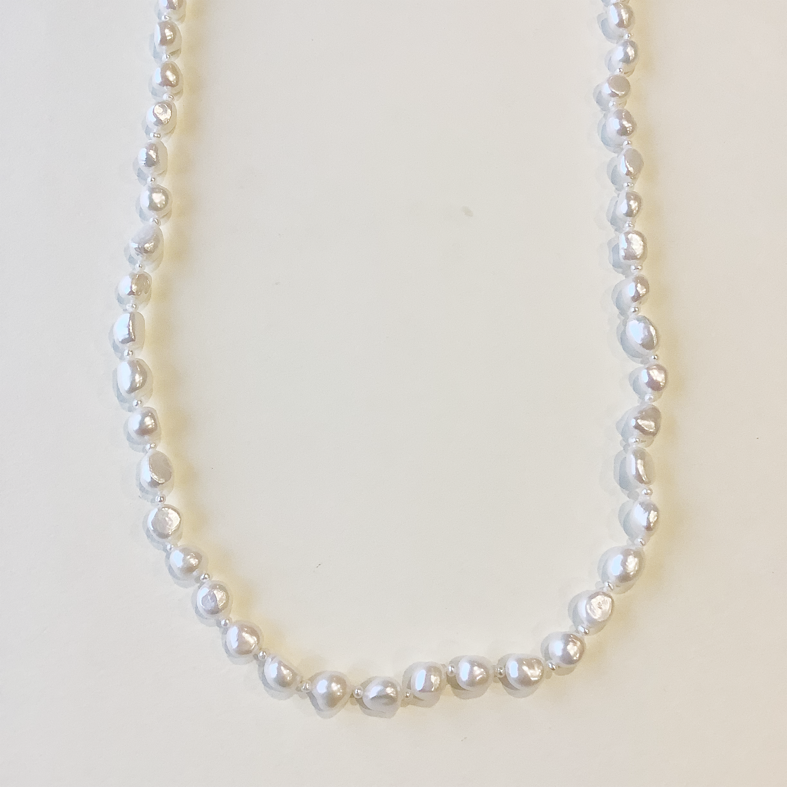 淡水バロックパールを使った、ロングネックレスです。フォーマルからカジュアルまで華麗に胸元を彩ります
