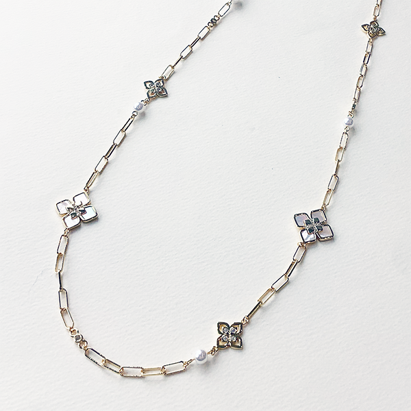 749114 JinkaNezu シェル&キュービックジルコニア フラワーモチーフ ステーションネックレス