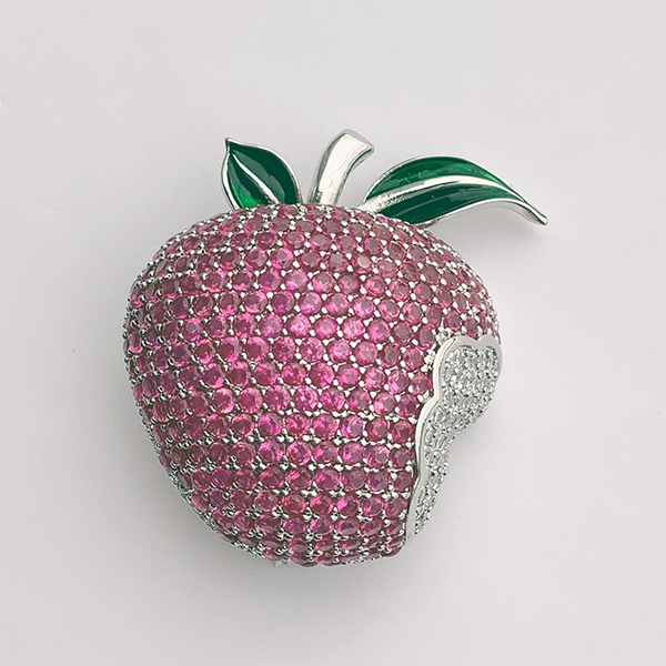 一口かじられたリンゴをモチーフにしたブローチ。果実の魅力とキュービックジルコニアの贅沢さを融合させた、まるで”アート”とも呼べるような逸品です。ブローチには合計270石以上のキュービックジルコニアを使用しています