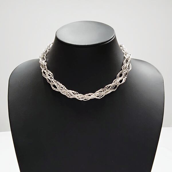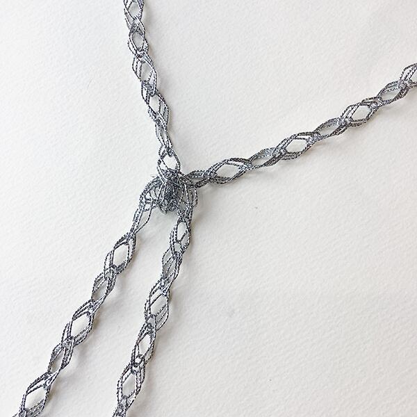 繊細なテクスチャーが揺れる度に煌めき、ダイヤシェイプの重なりが立体感と奥行きを演出。軽やかながらラグジュアリーなボリューム感のある計算されたデザインチェーンを贅沢に使用しました