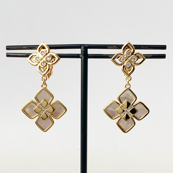 749188 JinkaNezu シェル&キュービックジルコニア フラワーモチーフ イヤリング/ピアス
