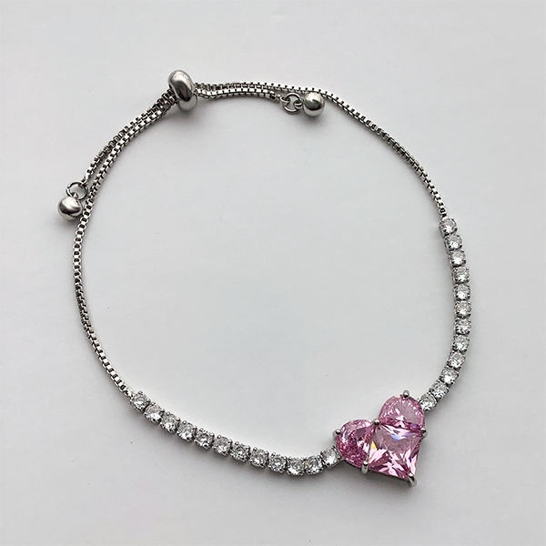 749190 JinkaNezu キュービックジルコニア ピンクハートライン ブレスレット