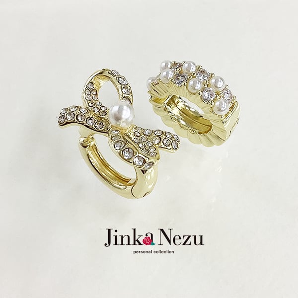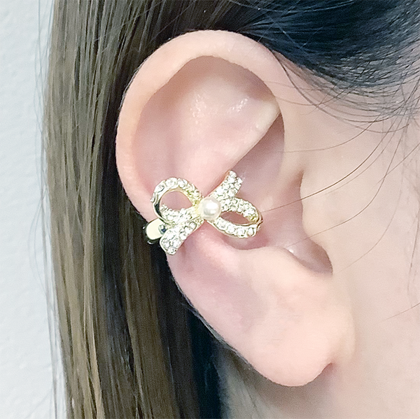 樹脂パールとキュービックジルコニアをセットした、イヤーカフの2個セットです。ひとつずつでも重ね着けでも、お好みにアレンジしてお使いいただけます