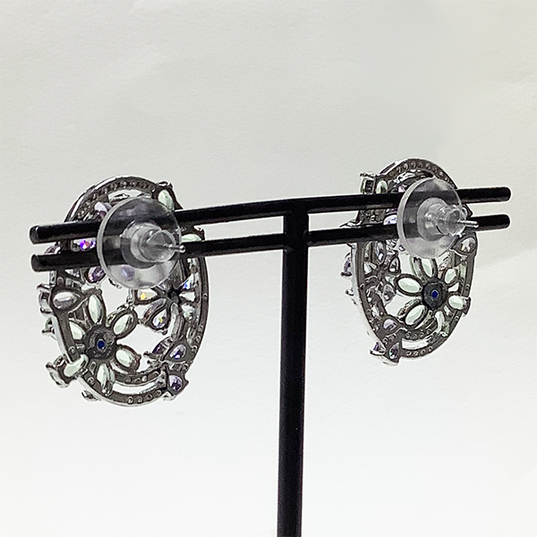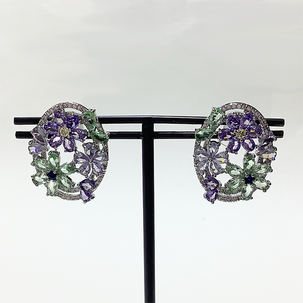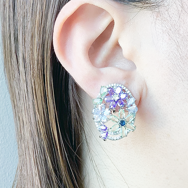 お花の中心にはコントラストカラーのキュービックジルコニアを配し、耳元に鮮やかな輝きをプラスしました