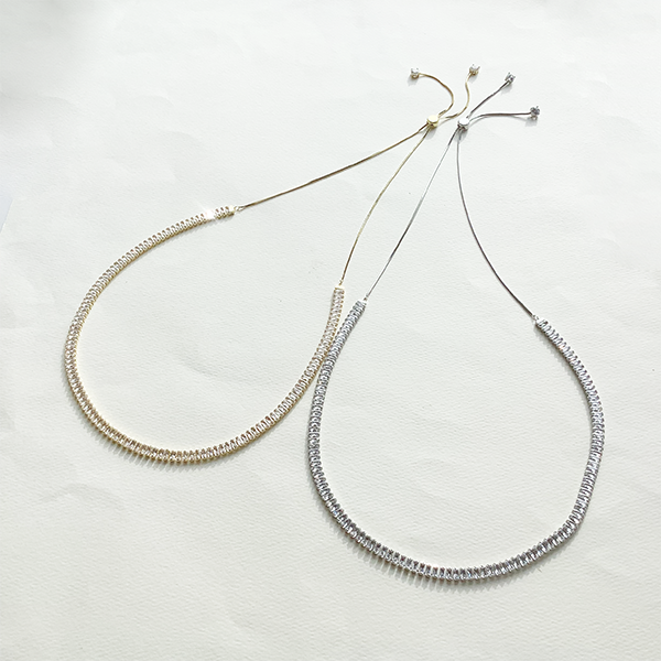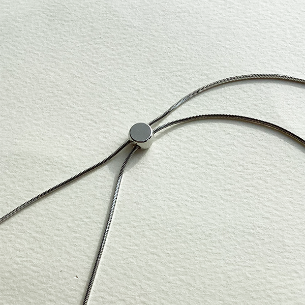 装いに合わせてスライド式パーツでお好みの長さに調節可能。タートルネックやデコルテを見せるスタイルにもおすすめです