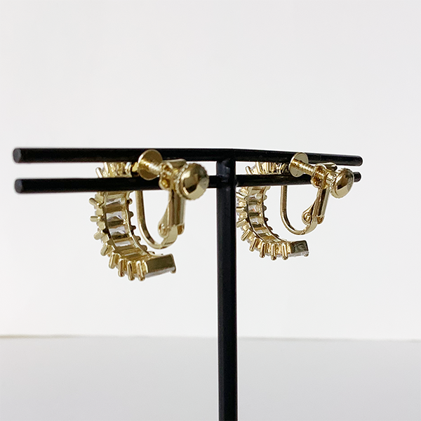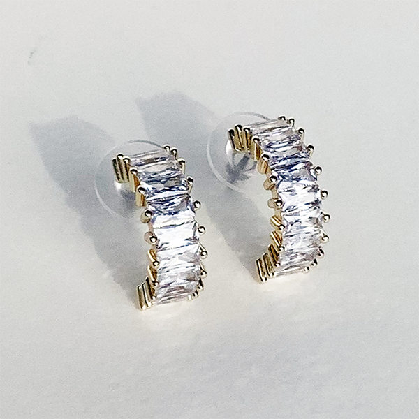 751851 JinkaNezu キュービックジルコニア バゲットカット フープイヤリング/ピアス