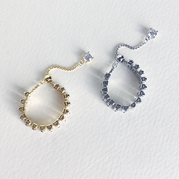 キュービックジルコニアが光を受けて繊細にきらめくリング。スライドパーツでサイズ調整ができ、お好みの指にフィット。プレゼントにもぴったりです。 その日の気分やコーディネートに合わせて、自由に楽しめるアクセサリーです