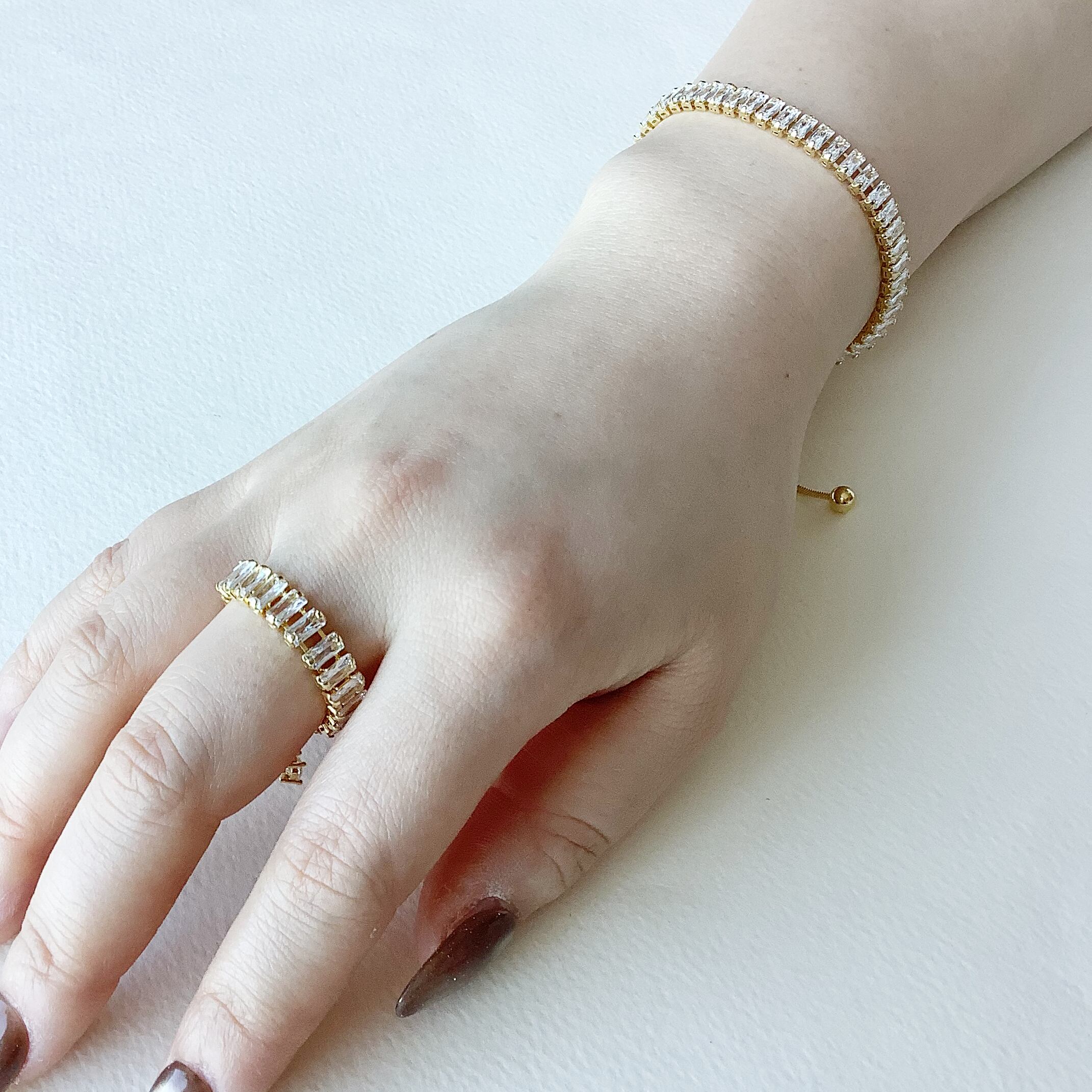751856 JinkaNezu キュービックジルコニア バゲットカット スライダーリング