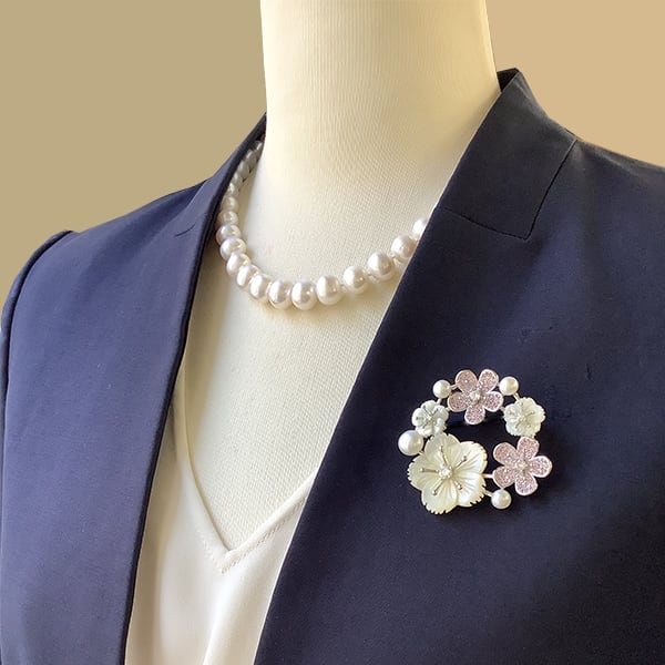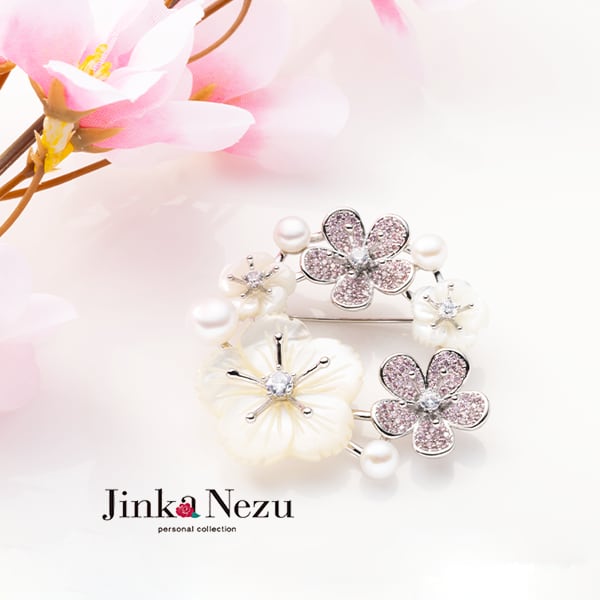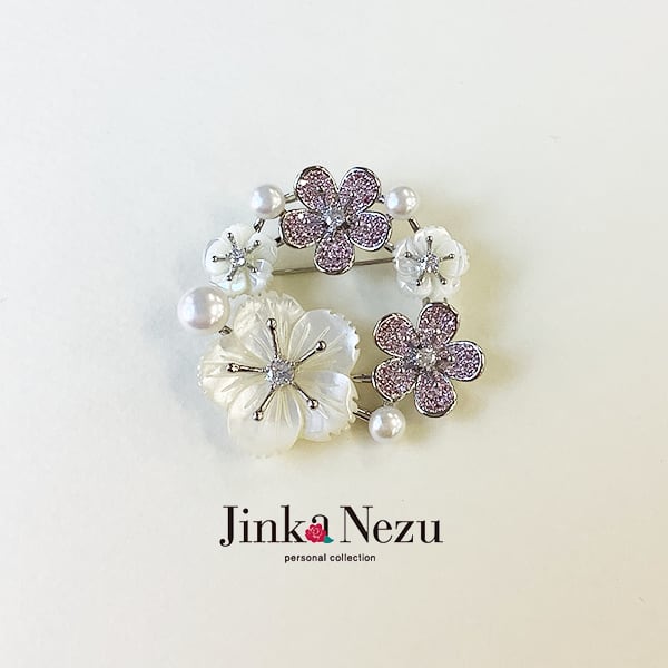 704838 JinkaNezu 淡水パール&シェルさくらブローチ