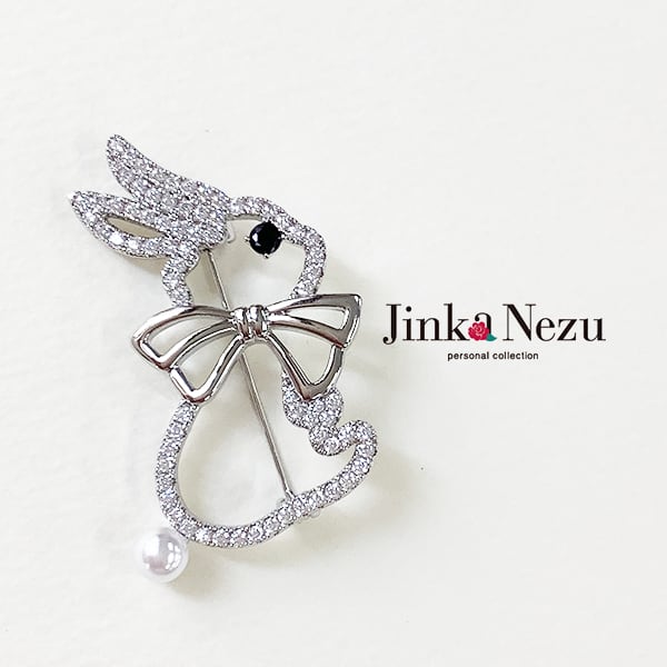 718385 JinkaNezu キュービックジルコニア うさぎ ブローチ