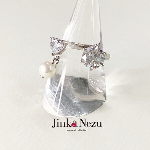 701834 JinkaNezu 淡水パールハートキュービックジルコニア フォークリング