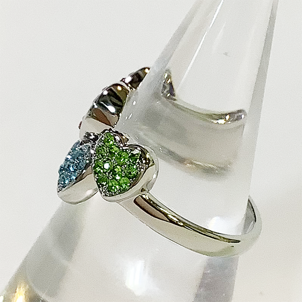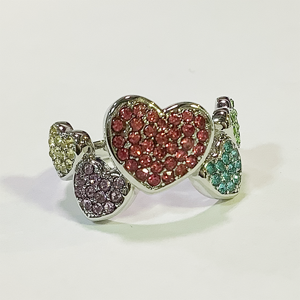 〇カラフルな色の大小のハートが配置されたリングです。