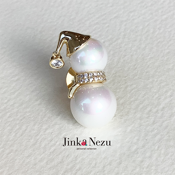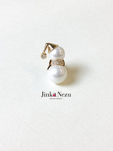 〇雪だるまをビジューパールで表現したキュートなタックピンです。シンプルながら大人可愛いコロンとしたフォルムはどこに付けても存在感を放ちます。
