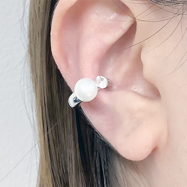 淡水パールをあしらったデザインと、キュービックジルコニアを使ったスタイリッシュなデザイン、タイプの異なる2つのイヤーカフをセットにしました
