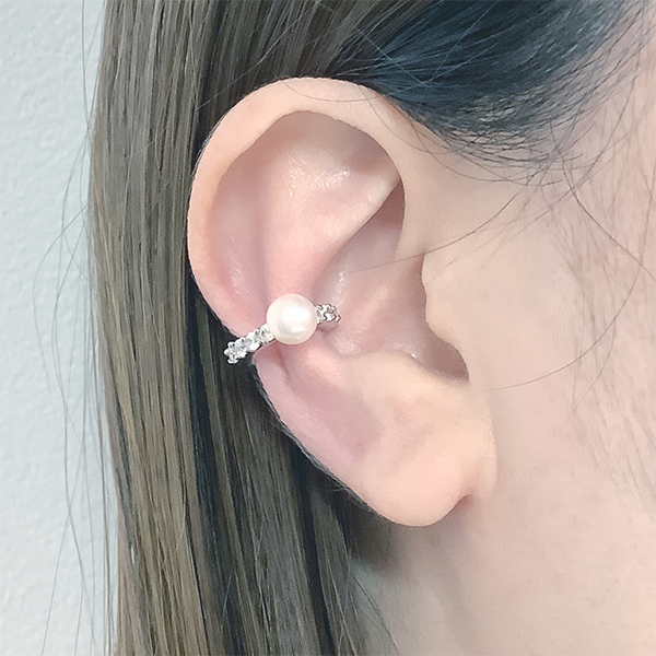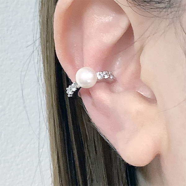 724532 JinkaNezu 淡水パール&キュービックジルコニア エレガントイヤーカフ 2個セット