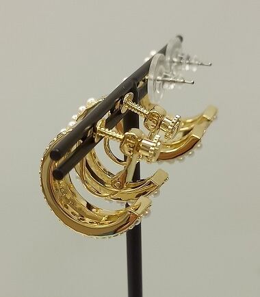 キュービックジルコニアと樹脂パールが輝くフープタイプのイヤリングまたはピアスに、きらめくチャームをセット。フープにチャームを掛けて印象の違うデザインを楽しむことができる、趣向を凝らしたデザインです