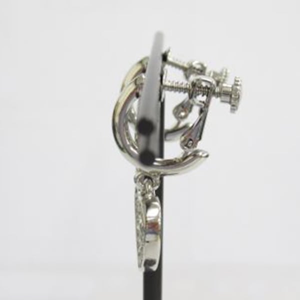 煌めくハートが動くたびに左右に揺れるフープタイプのイヤリングまたはピアス。たっぷりと施されたクリスタルガラスが大人の可愛らしさを演出します