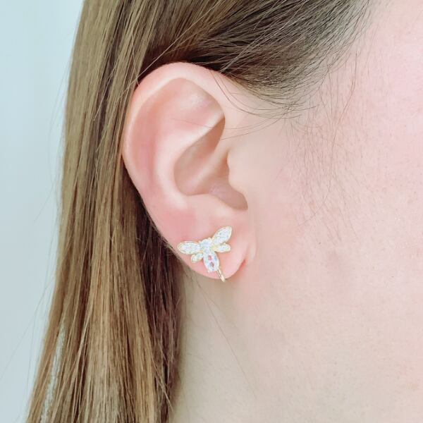 〇女王バチをモチーフにしたキュービックジルコニアのイヤリング/ピアスです。耳元を華やかに彩る存在感のあるイヤリング/ピアスです。
