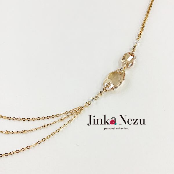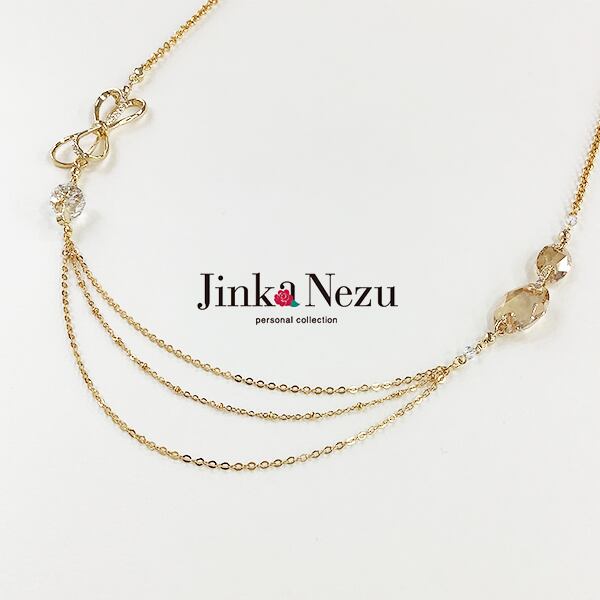 703348 JinkaNezu クリスタルガラス ダブルリボン ロングネックレス