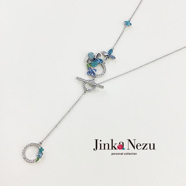 705066 JinkaNezu クリスタルガラス アズールフラワー トグル ネックレス