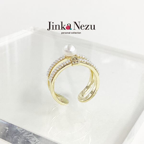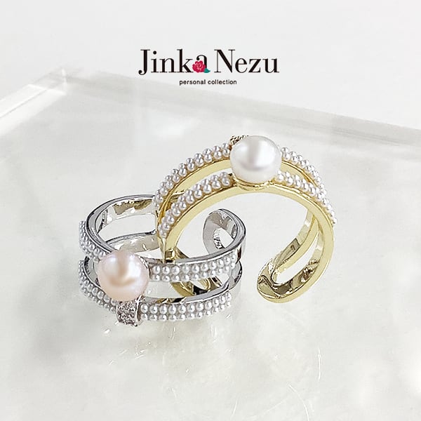 701841 JinkaNezu 淡水パール&キュービックジルコニア 2ライン リング