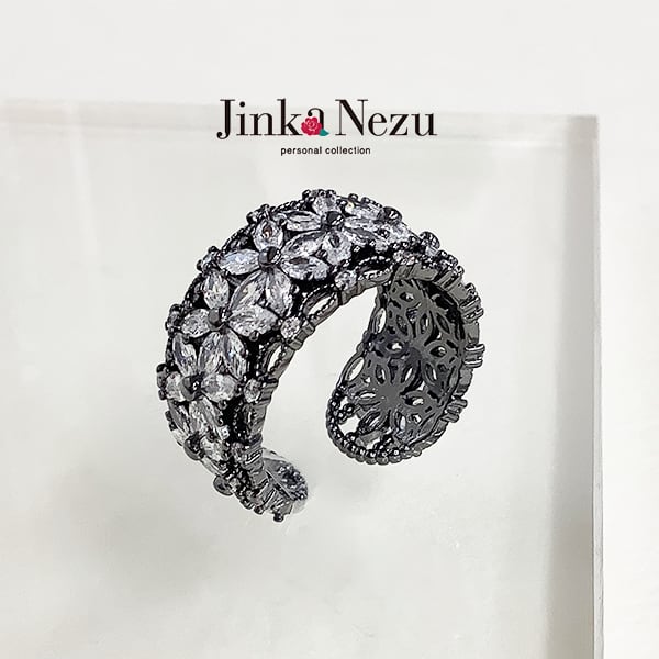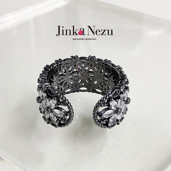 701944 JinkaNezu キュービックジルコニア ブラックフラワー リング