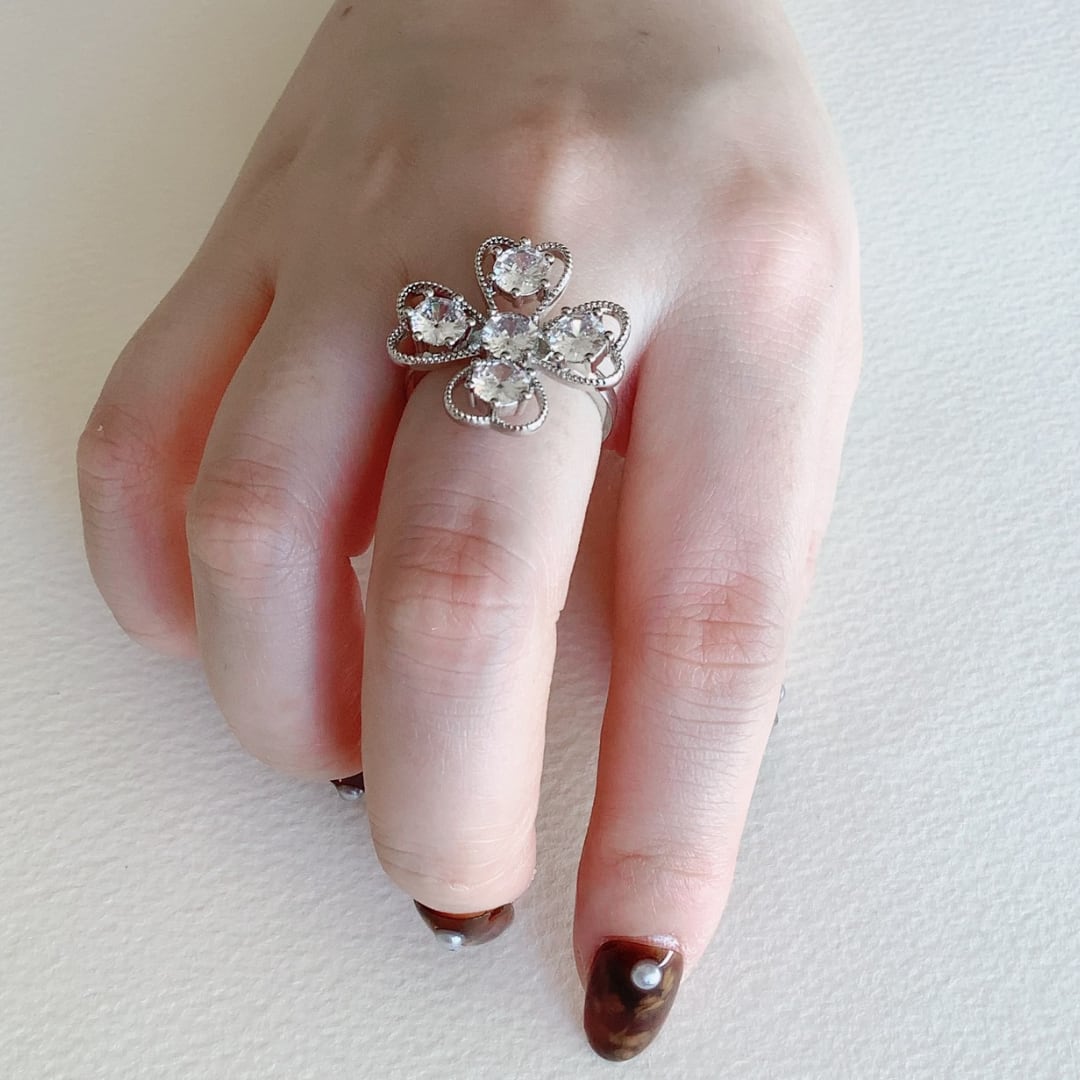 〇キュービックジルコニアを使ったクローバーデザインのリングです。