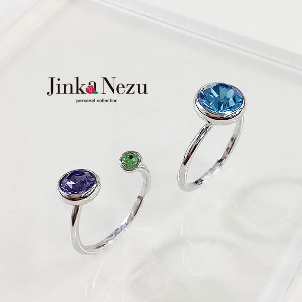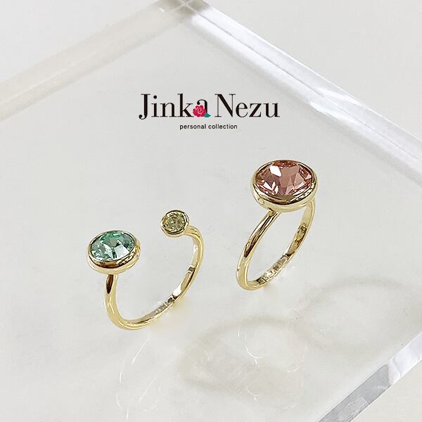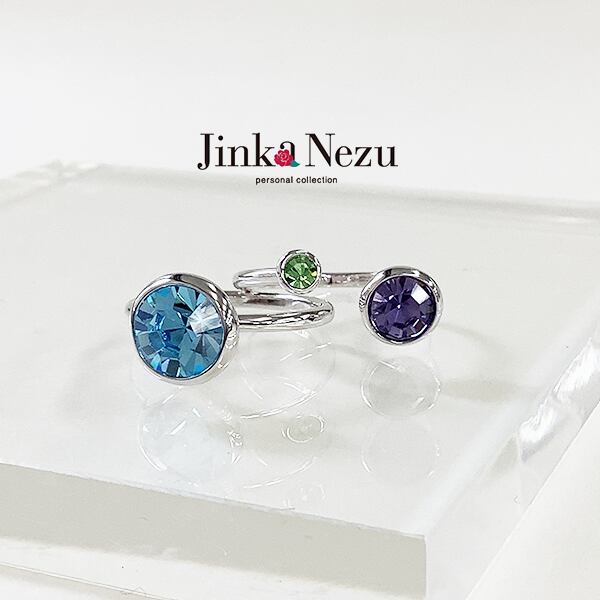 〇流行のマルチカラーにJinkaNezuらしく煌めきをプラス。存在感のある大ぶりなクリスタルガラスでスタイリッシュながらキュートな色合いに仕上げました。