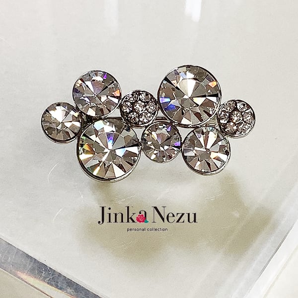 大小のクリスタルガラスで構成された、シンプルながら煌めきのあるデザインブローチです
