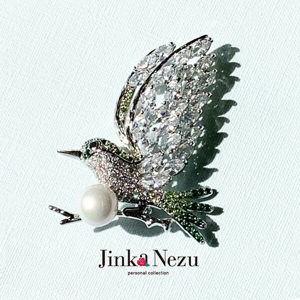 724517 JinkaNezu キュービックジルコニア グリーン ハミングバード ブローチ