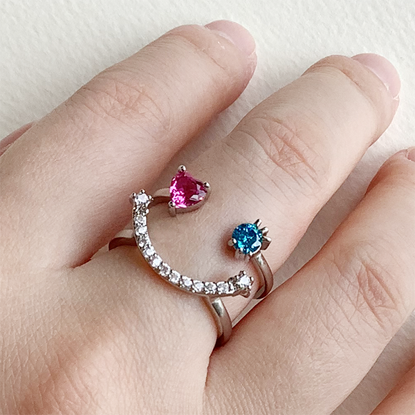 色違いのおめめが愛らしいスマイルリング。まつ毛もチャームポイントで、身に着けているだけで、ハッピーな気持ちになれるモチーフです