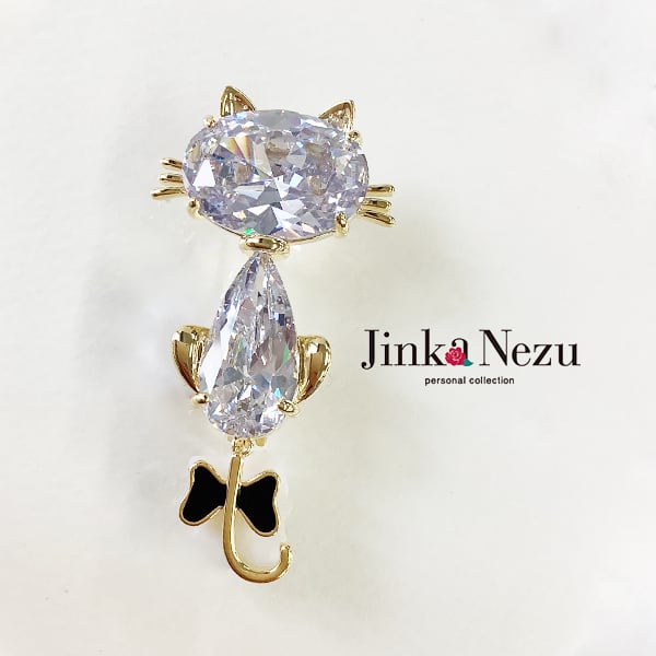730875 JinkaNezu キュービックジルコニア おすましキャット ブローチ