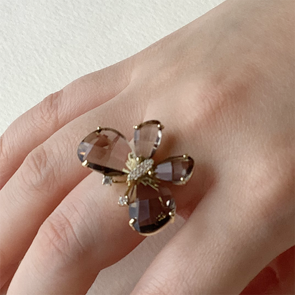 バタフライをモチーフにしたリング。スモーキーグレーカラーのシックな羽が、愛らしいデザインを大人の印象にまとめています