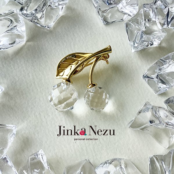 733955 JinkaNezu 水晶 さくらんぼブローチ